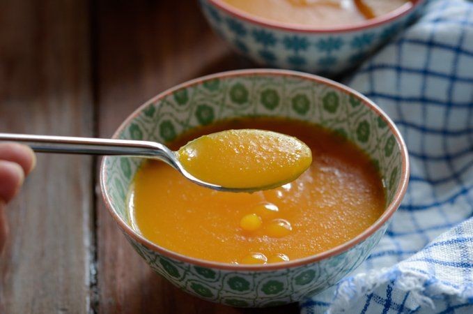 - Potong-potong labu dan rebus dengan 5 gelas air putih hingga labu telah menjadi empuk.