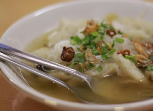 4. Ambil sejumput adonan bentuk bulat, masukkan ke panci air panas tadi. Lakukan sampai adonan habis.