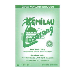 Garam Kemilau Losarang adalah garam berkualitas produk PT. Sumatraco Langgeng Makmur. Garam Kemilau Losarang adalah produk garam beryodium yang mengandung yodium minimum 30 ppm. Dan produk garam Garam Kemilau Losarang ini diproduksi dan tersedia dalam ukuran: 10000 gr. Garam halus ini dari petani yang cara pembuatannya pakai oven. Garam ini cocok ditaburkan pada makanan dan cocok untuk catering rumahan. Garam ini juga berfungsi sebagai kesehatan antibody tubuh, mengerinhgkan jerawat, mengatasi rambut rontok, dan masih banyak lagi.