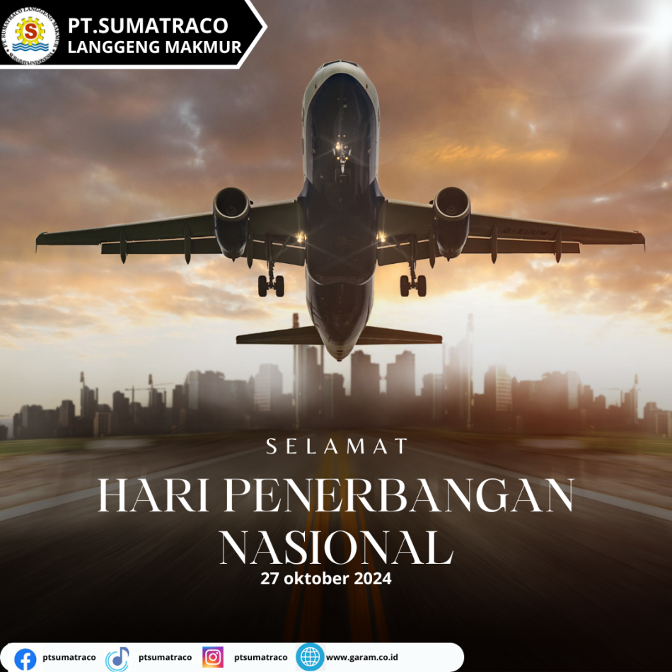 www.garam.co.id. Surabaya,27 oktober 2024 Hari Penerbangan Nasional menjadi momentum bagi PT Sumatraco Langgeng Makmur untuk kembali merenungkan perjalanan panjang perusahaan. Sama seperti pesawat yang terus melambung tinggi, PT Sumatraco juga terus berupaya untuk mencapai ketinggian baru dalam industri garam.